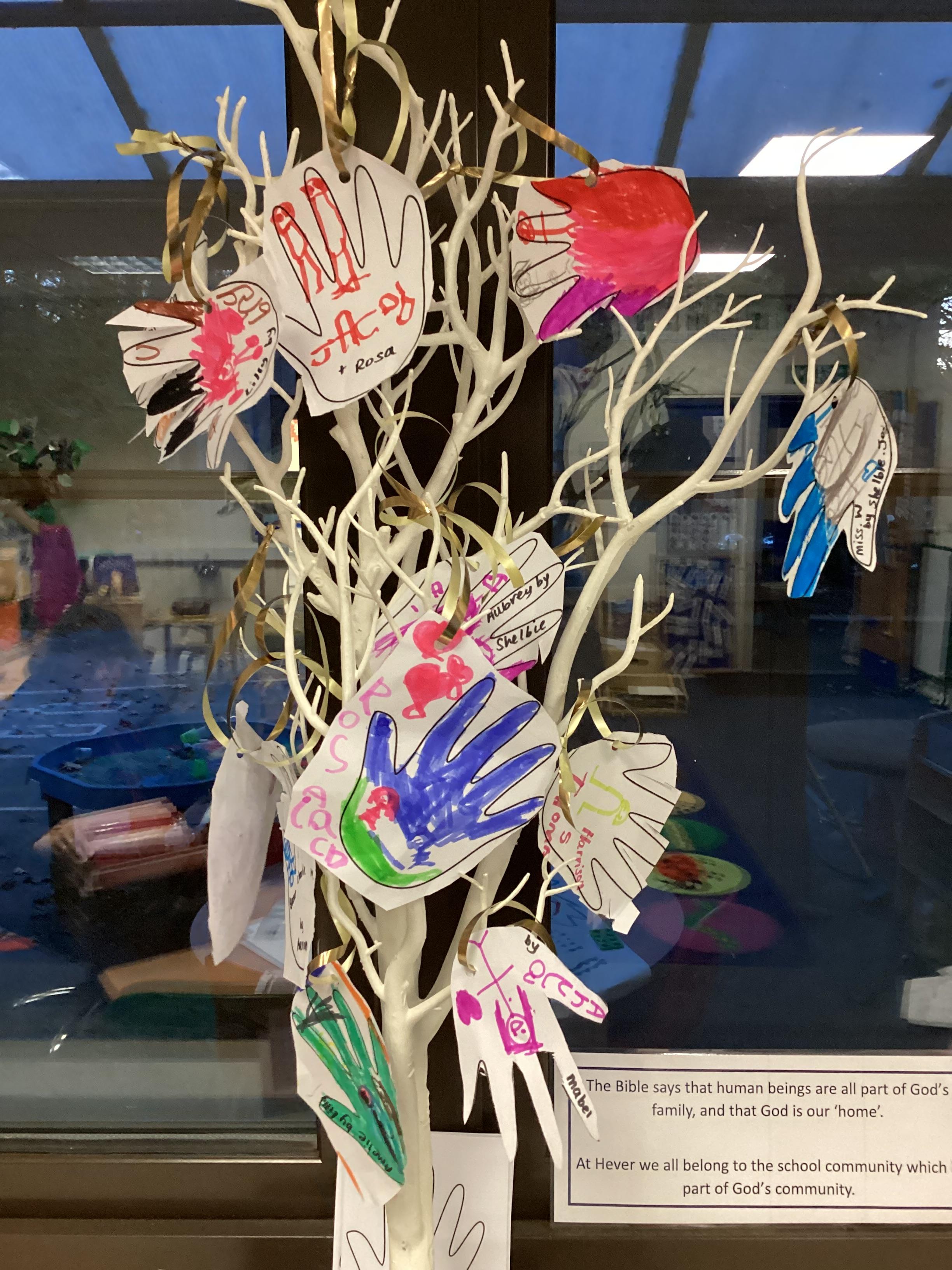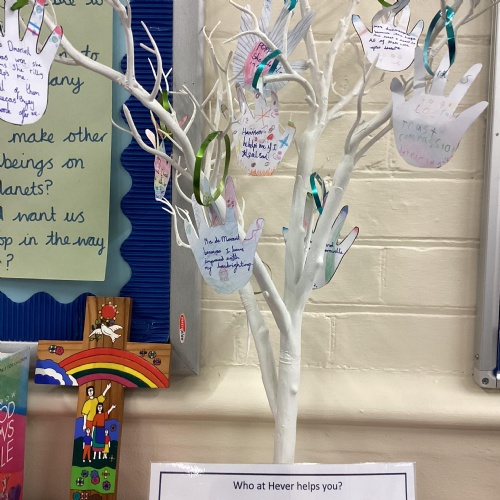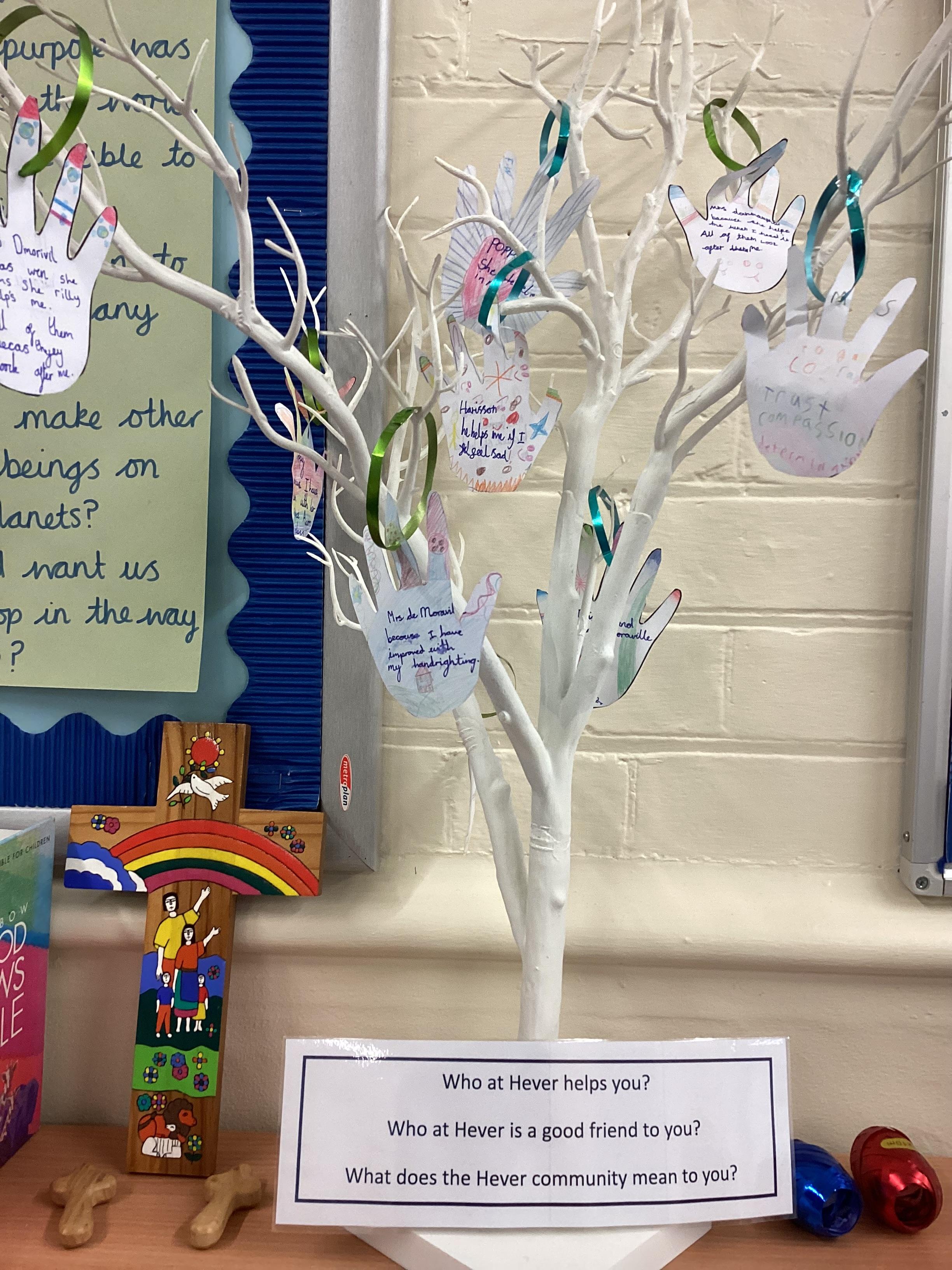 Prayer and reflection are an important part of daily life at Hever. Opportunities for prayer and reflection are available at all times of day throughout the school. Each class has a reflection corner which is accessible to the children. They can add to class prayer and reflection books independently, or following RE lessons and collective worship. All Children can also access the school prayer station which is reflective of the Christian calendar throughout the year.